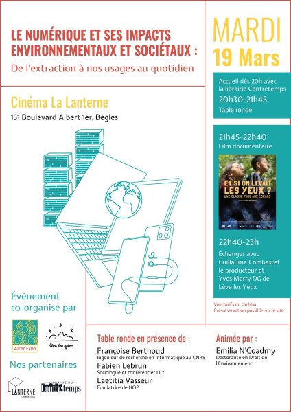 Nous vous partageons un évènement sur le Numérique qui se déroulera au cinéma la Lanterne (barrière de Bègles) mardi 19 mars à partie de 20h00.